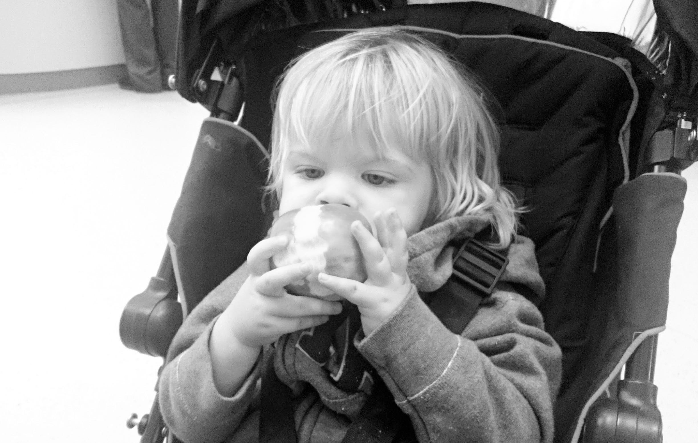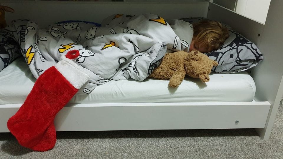 Rhys screamed that day. The acoustics in the empty shell of a building were not the right atmosphere, and the addition of the water and cold air was a recipe not fit for the Paul Hollywood handshake! I don't know why I did it. Maybe it was because Rhys had kicked his shoes off in frustration and his feet were currently auditioning for an Irish jig, or I just grabbed his feet to calm him down, but it worked.